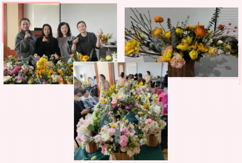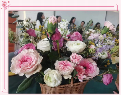 花是美好生活的象征,將春光插進(jìn)花束里,別有一番美麗,在花香繚繞中,大家共同度過了一個(gè)愉快的節(jié)日,此次活動(dòng)不僅讓大家學(xué)到了插花知識(shí),在豐富了其日常文化生活的同時(shí)還享受插花藝術(shù)的樂趣,提高了生活熱情,陶冶了情操。在溫馨浪漫的氛圍中,活動(dòng)圓滿結(jié)束。